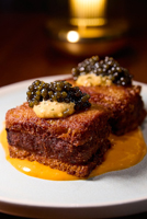 シェフ・ソンチョル・シムが手がけるグイ・ステーキハウスは、伝統的なアメリカン・ドライエイジ・ステーキに、繊細な韓国料理を融合させた注目の一軒。ニューヨークのシアター街にあるこのお店は、2フロア構成で、1階にはスタイリッシュなバー「Bar 92」、2階は、まるで宝石のように洗練された色使いの美しく落ち着いたダイニング空間が広がっています。。シェフ・シムは、ニューヨークの三つ星レストラン「ル・ベルナダン」「パー・セ」「オリオール」で腕を磨いた後、ミッドタウンで人気を博すミシュラン星付きレストラン「コチ」や「マリ」を展開する実力派。グイ・ステーキハウスは、そんな彼の最新プロジェクトです。